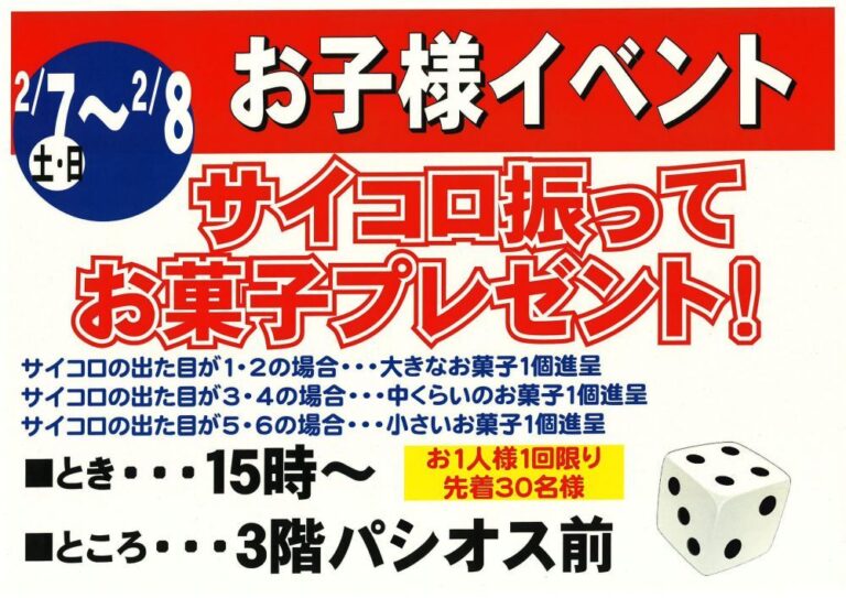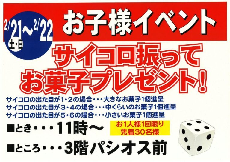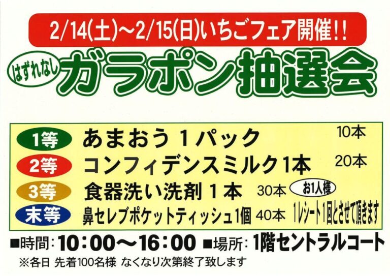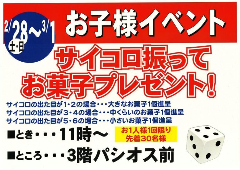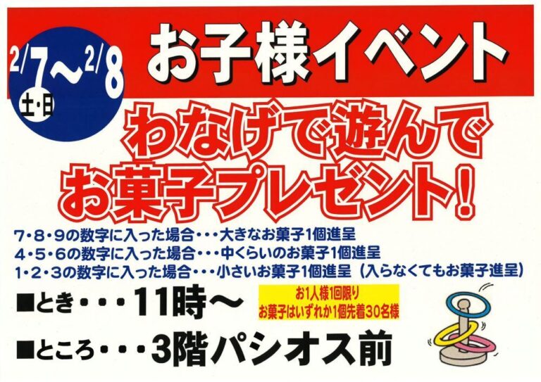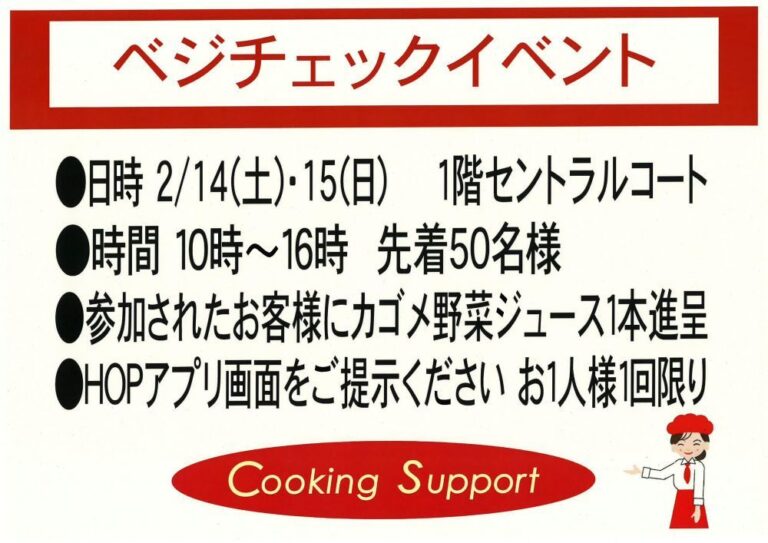 お店をさがす 求人情報 ショップニュースイベント情報インフォメーション Load More 2026-02-04 2026年2月セール、イベント 2026-02-01 2月7日(土)・8日(日)11時~|わなげで遊んでお菓子プレゼント!お子様イベント 2026-02-01 2月7日(土)・8日(日)15時~|サイコロ回振ってお菓子プレゼント!お子様イベント 2026-02-01 2月14日(土)・15日(日)11時~|わなげで遊んでお菓子プレゼント!お子様イベント 2026-02-01 2月14日(土)・15日(日)15時~|サイコロ回振ってお菓子プレゼント!お子様イベント 2026-02-01 2月14日(土)・15日(日)10時~16時|ベジチェックイベント(カゴメ野菜ジュースプレゼント) 2026-02-01 2月14日(土)・15日(日)10時~16時|いちごフェア・ガラポン抽選会開催!旬のいちごを大放出!! 2026-02-01 2月14日(土)~15日(日)10:00~16:00|いちごフェア開催!! はずれなしガラポン抽選会 2026-02-01 2月21日(土)・22日(日)11時~|サイコロ回振ってお菓子プレゼント!お子様イベント 2026-02-01 2月21日(土)・22日(日)15時~|ボール抽選会でお菓子プレゼント!お子様イベント 2026-02-01 2月28日(土)・3月1日(日)11時~|サイコロ回振ってお菓子プレゼント!お子様イベント 2026-02-01 2/28(土)・3/1(日)10:00〜18:00 電動アシスト自転車 試乗体験会&展示即売会(※3/1は16:00まで) 2026-02-01 2月28日(土)・3月1日(日)15時~|ボール抽選会でお菓子プレゼント!お子様イベント 2025-12-06 営業時間のお知らせ HOPカード関連 商品情報 くらしのサービス その他 その他 281,747 FacebookXBlueskyCopy