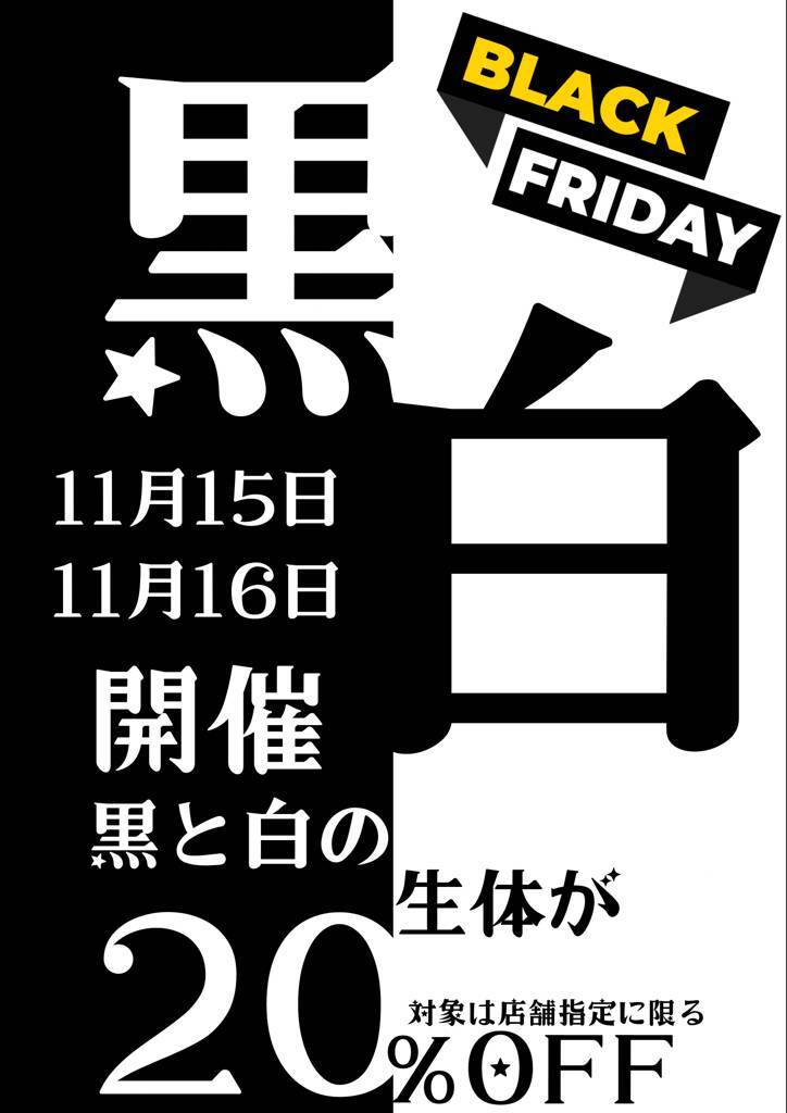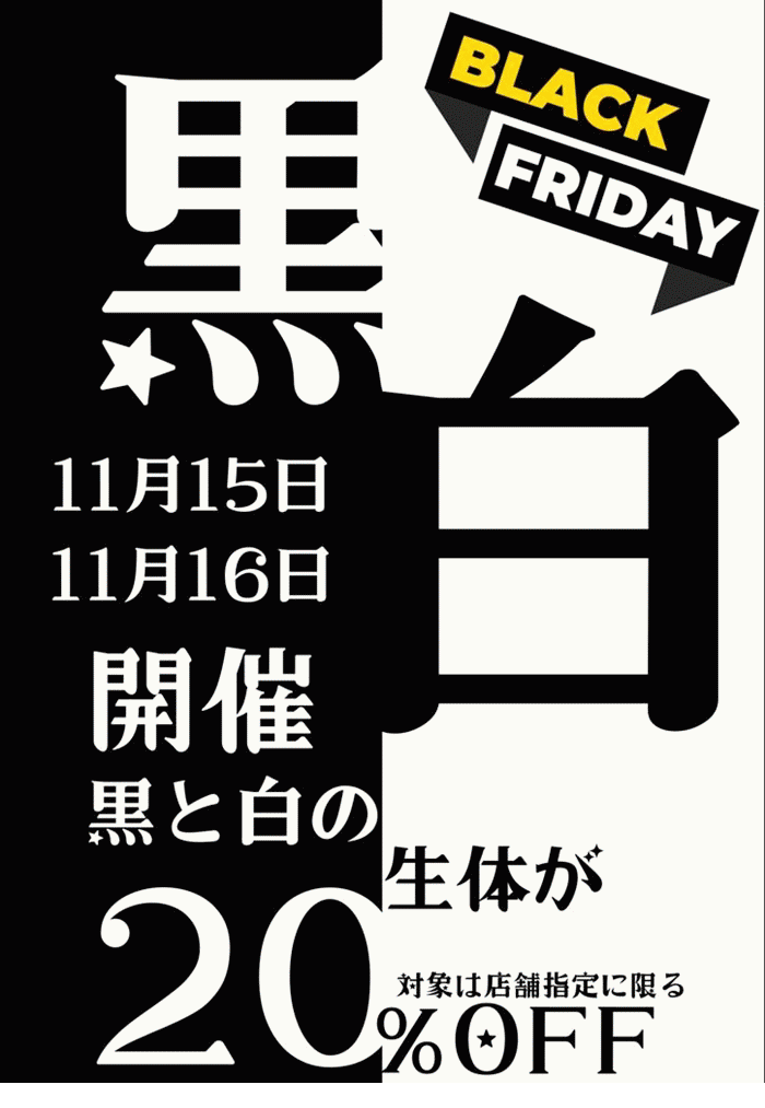黒と白の生体が20%OFF。