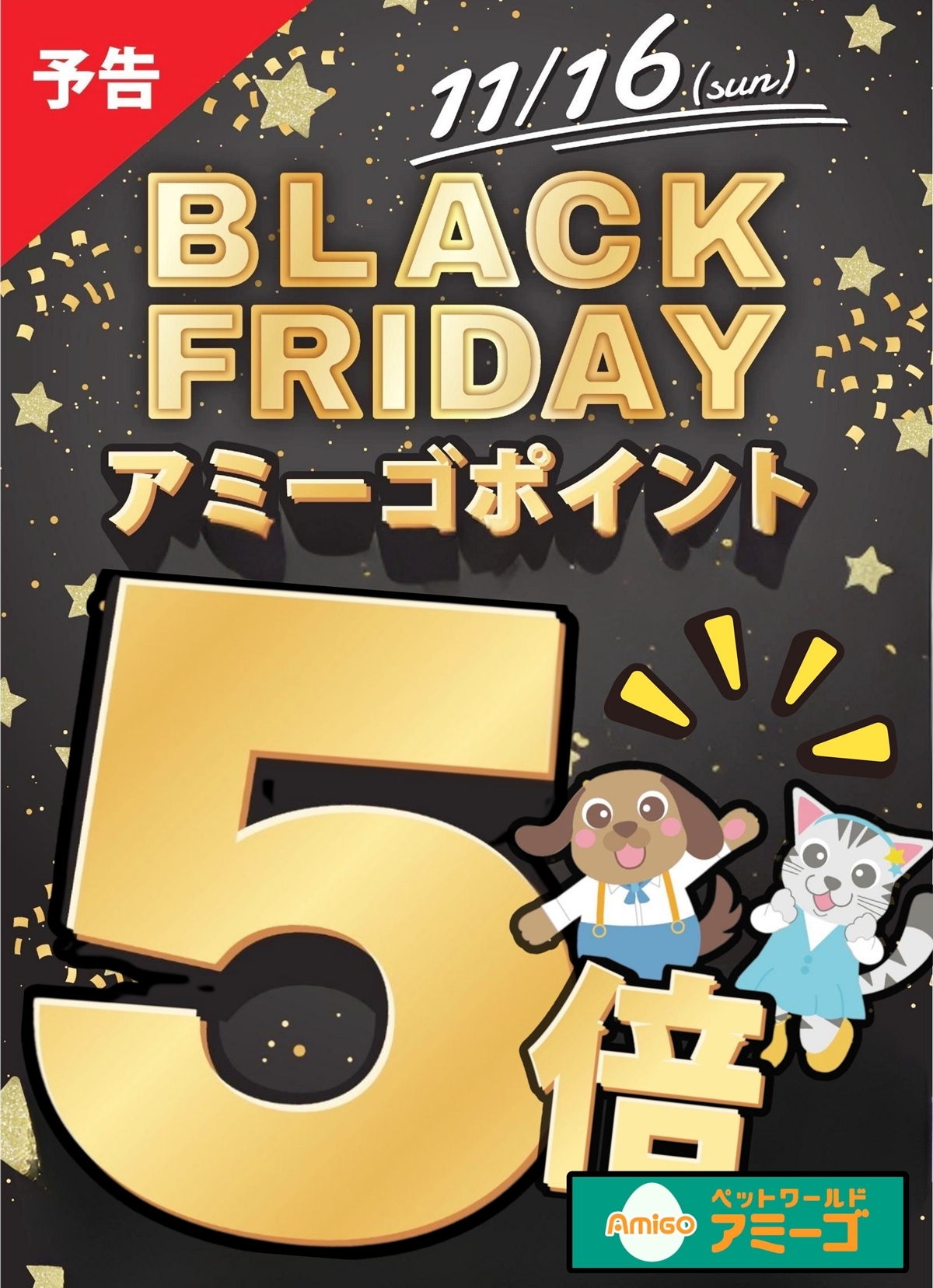 11月16日(日)の ポイント5倍はアミーゴのポイントカードのアミーゴポイントのみです。