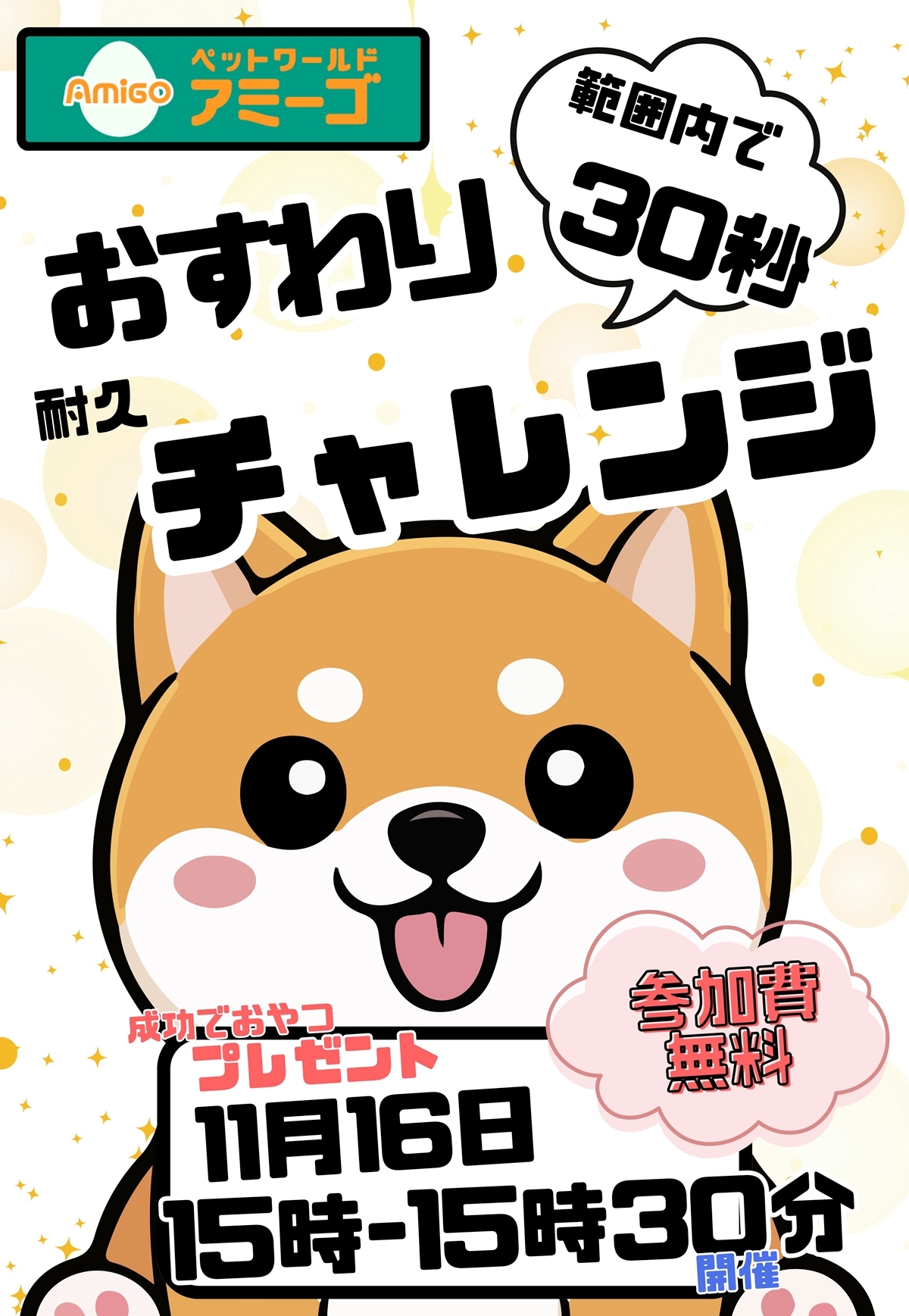 おすわり 耐久チャレンジ!範囲内で30秒