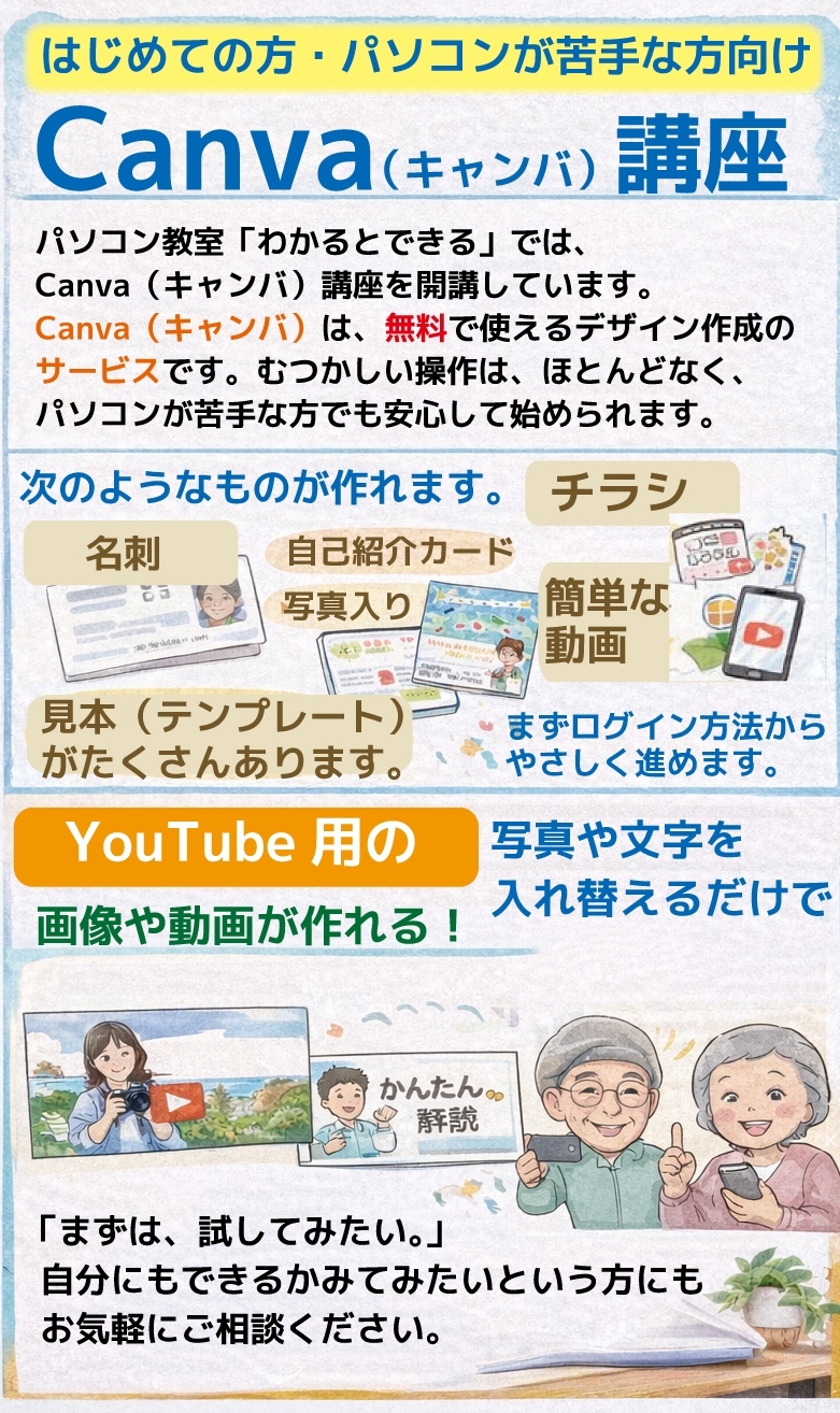 パソコン教室「わかるとできる」では、Canva(キャンバ)講座 を開講しています。