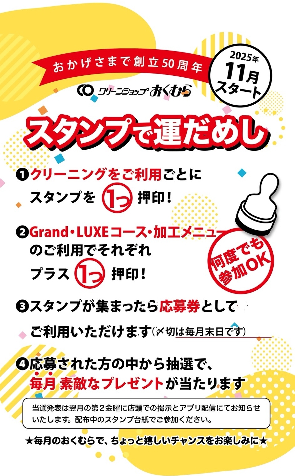 【50周年企画 第3弾】スタンプあつめて運だめし