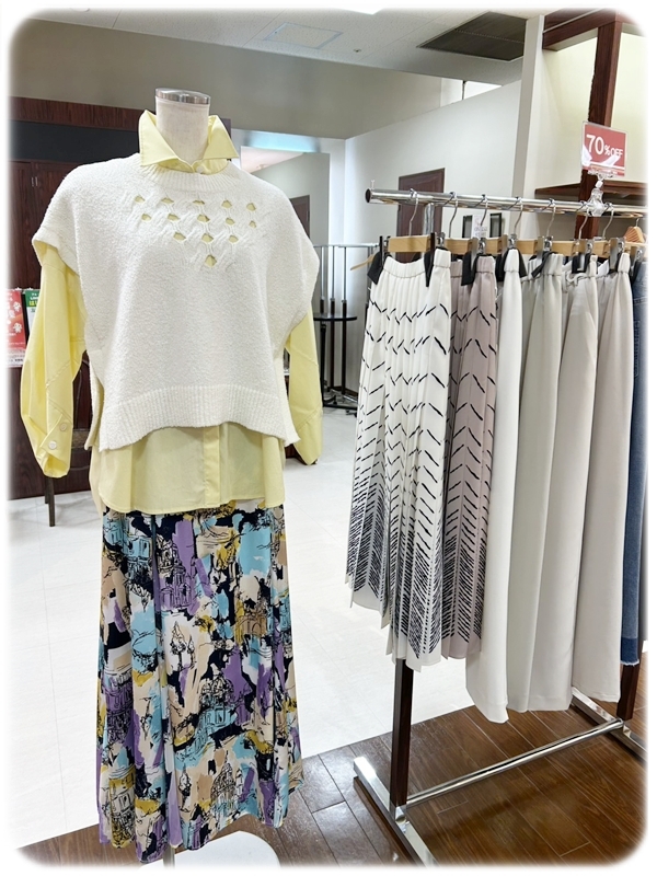 重ね着しやすいトップスや、動きのあるスカートは、季節の変わり目におすすめです。