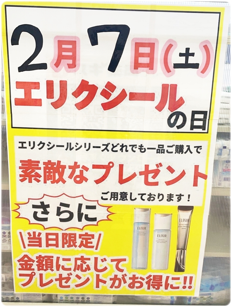 スギ薬局 アルプラザ醍醐店(2階)|【2月7日限定】エリクシールの日|ご購入で素敵なプレゼント進呈