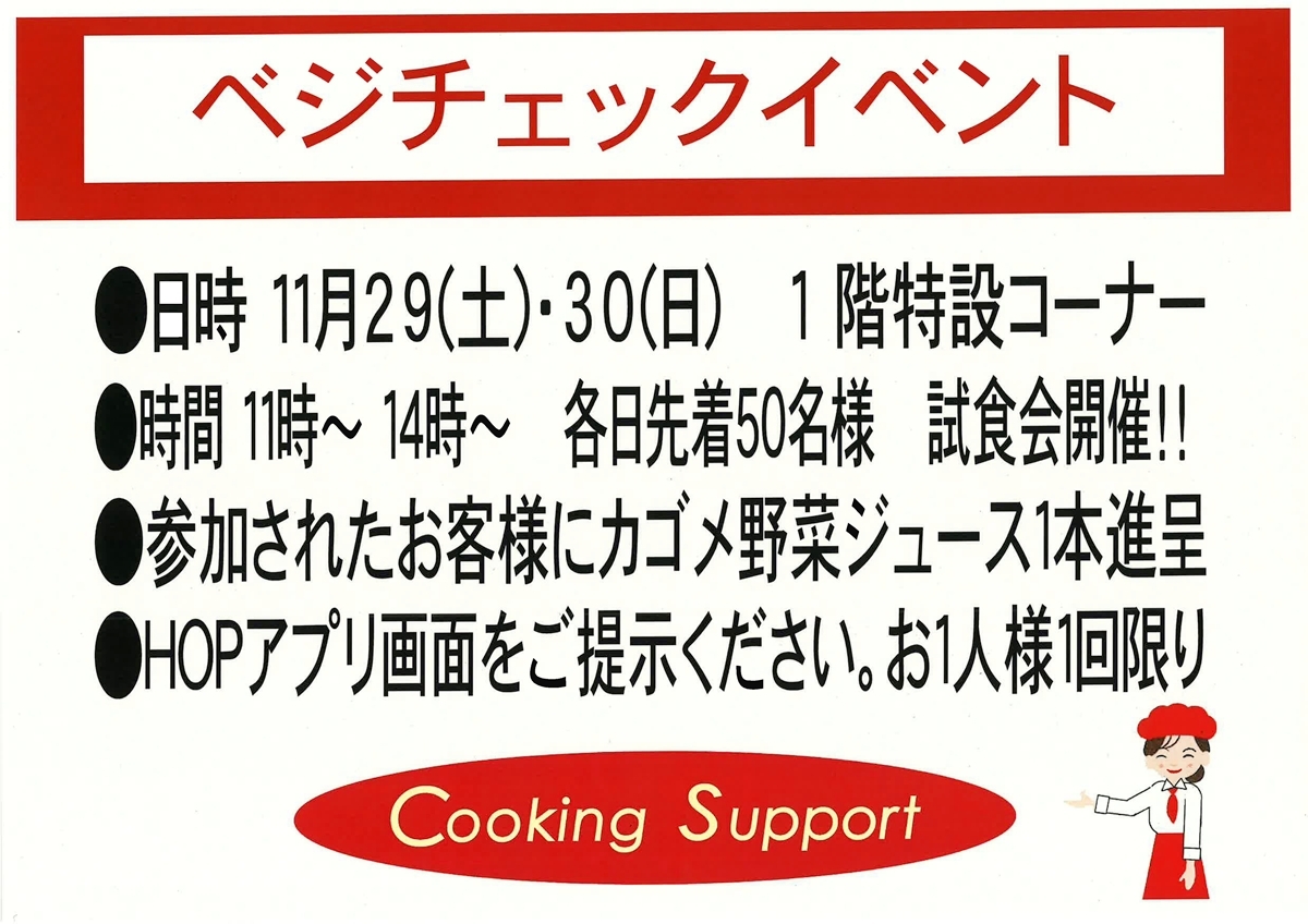 11月29日(土)・30日(日)/11時~・14時~/ 1階特設コーナー/ ベジチェックイベント
