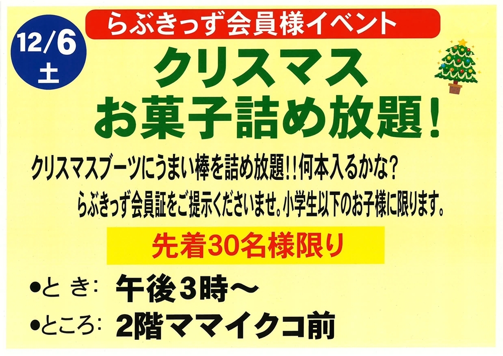 2025年12月6日(土)らぶきっず会員様イベント クリスマスお菓子詰め放題