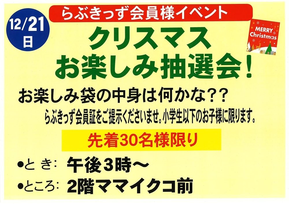 2025年12月21日(日)クリスマスお楽しみ抽選会