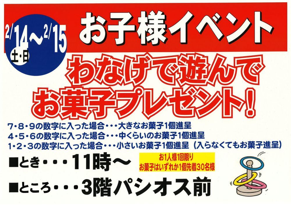2月14日(土)・15日(日)11時~|わなげで遊んでお菓子プレゼント!お子様イベント