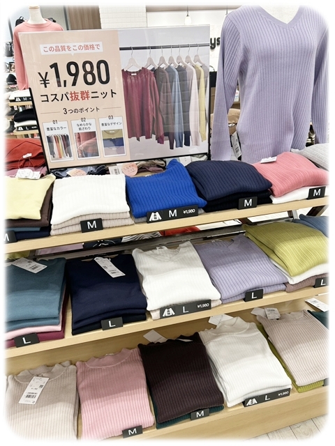 ニットやカットソーは、肌ざわりがやさしく、一枚でも重ね着でも使いやすいデザインが中心となっています。