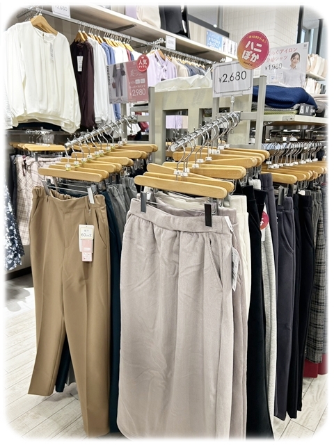 裏起毛のパンツやスキニーパンツは、冷えやすい季節でも足元まで暖かく、普段のお買い物や外出時に活躍してくれます。