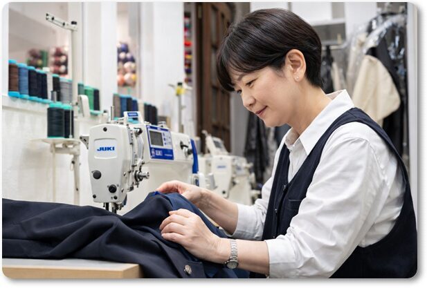 パンツの裾上げやスカート丈の調整、ジャケットの袖丈直しなど、体型に合わせたお直しが可能です。