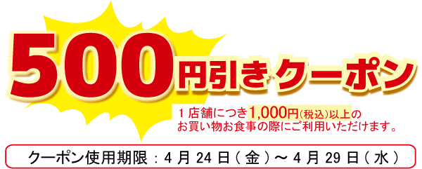 ・1店舗につき 1,000円(税込)以上 のお買い物・ご飲食でご利用いただけます