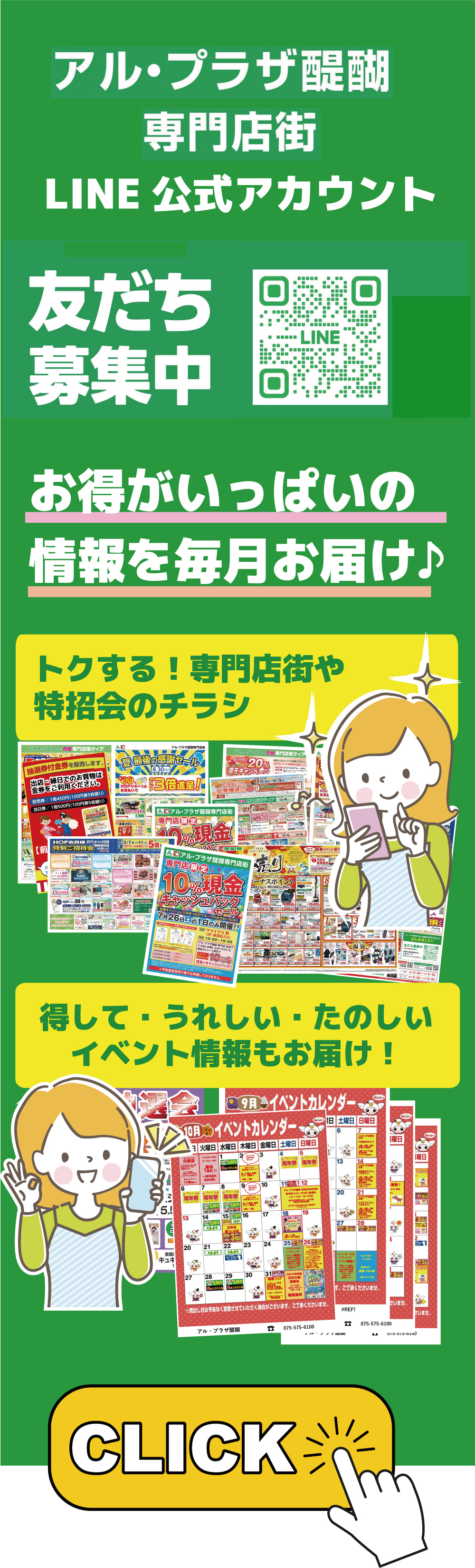 専門店各店舗のとってもお得な情報や楽しいイベント情報などをLINEでお届け致します!