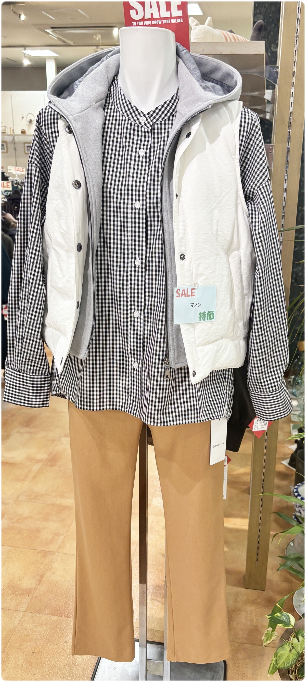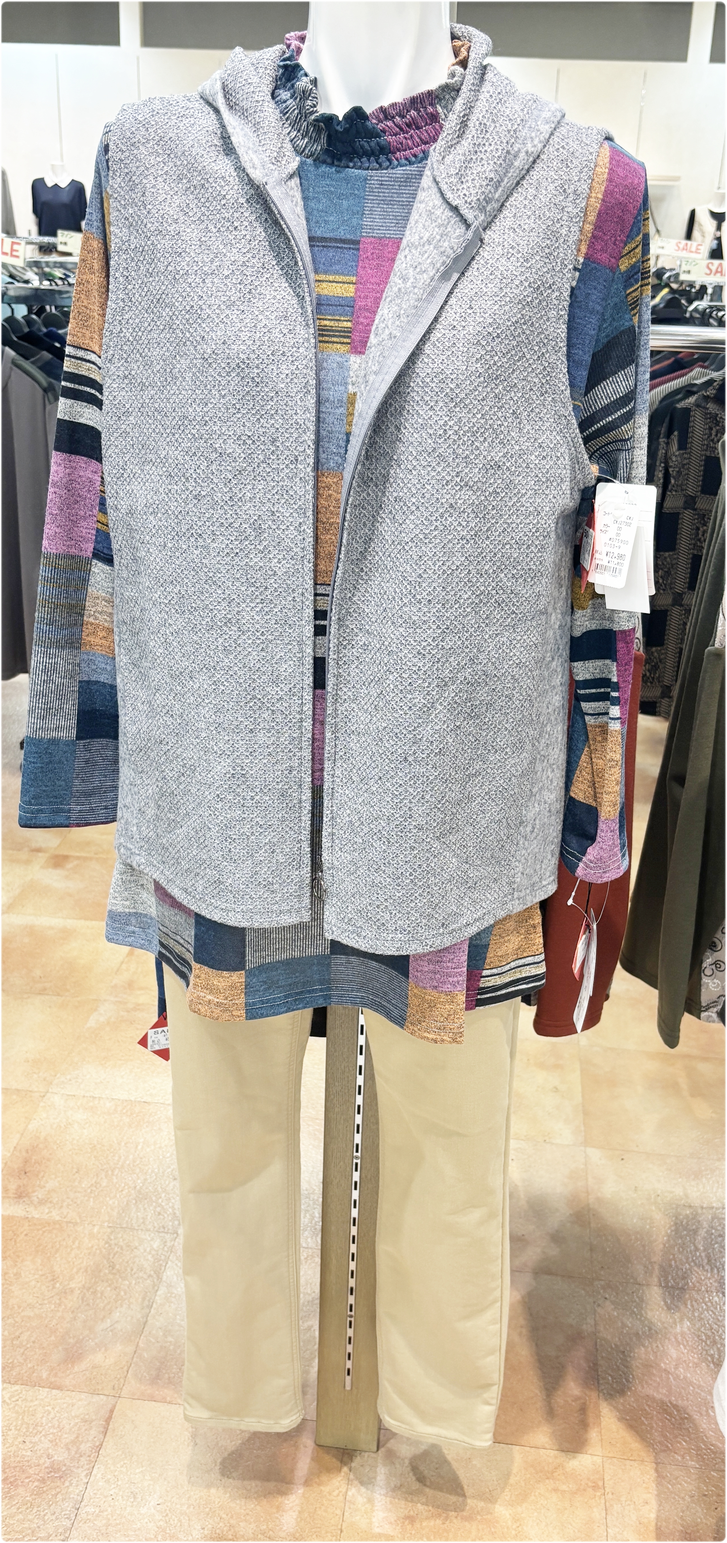 この時期は、気温の変化に合わせて調整しやすいベストや羽織りものが人気です。