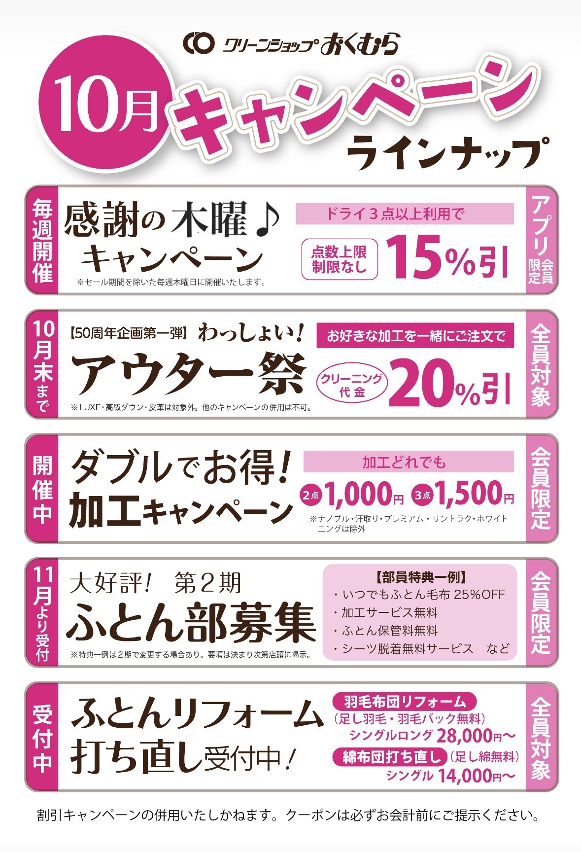 クリーンショップおくむら 醍醐店(1階)|2025年10月のキャンペーン ラインナップ!!
