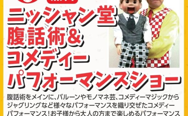 2025年12月21日既に終了の過去のイベントアル・プラザ醍醐専門店 2026年新春お楽しみイベント|【2026年1月4日(日)】ニッシャン堂 腹話術&コメディーパフォーマンスショー2026年1月4日(日)、アル・プラザ醍醐で開催される新春お楽しみイベント。ニッシャン堂による腹話術とコメディーを融合した観覧無料のパフォーマンスショーです。