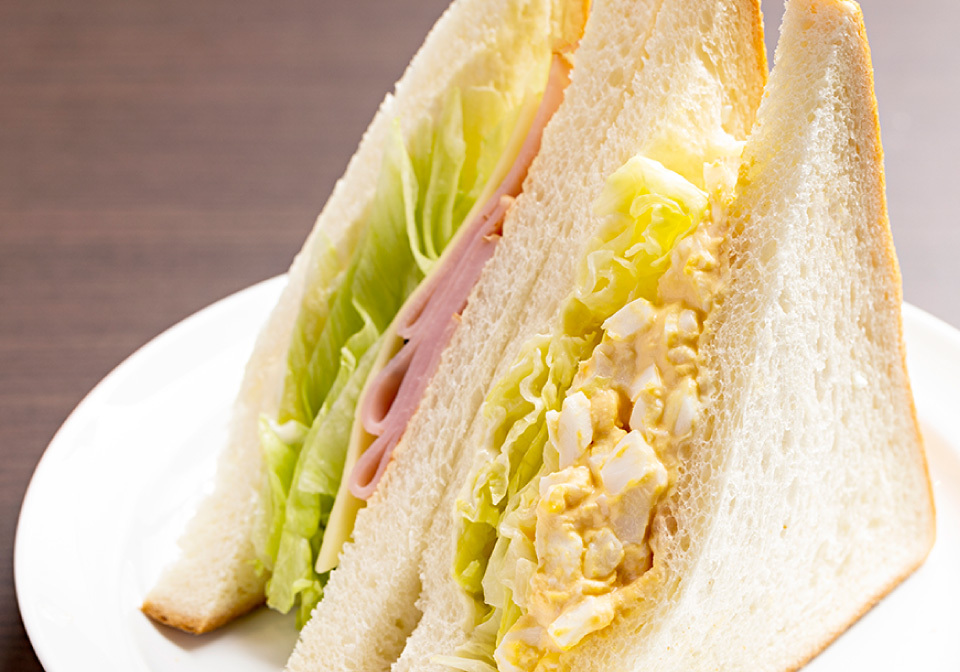 ホリーズカフェでご提供しているサンドイッチは、すべて当日に、各店舗でお作りしています。シャキシャキのレタスや玉子がたっぷり入った、ボリューム満点のサンドイッチです。手作りならではの美味しさをお楽しみください。