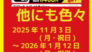 まとめ買いするなら今がチャンス! いつもスギ薬局 アルプラザ醍醐店をご愛顧いただきありがとうございます。 日頃のご愛顧に感謝いたしましてお客様にお得なお知らせです。 期間中スギ薬局 アルプラザ醍醐店でのまとめ買いが超お得 … 続きを読む スギ薬局 アルプラザ醍醐店(2階)|2025年11月3日(月・祝日)~2026年1月12日(月・祝日) 日用品から食品まで!いつもの商品をまとめて買うなら今がチャンス!!