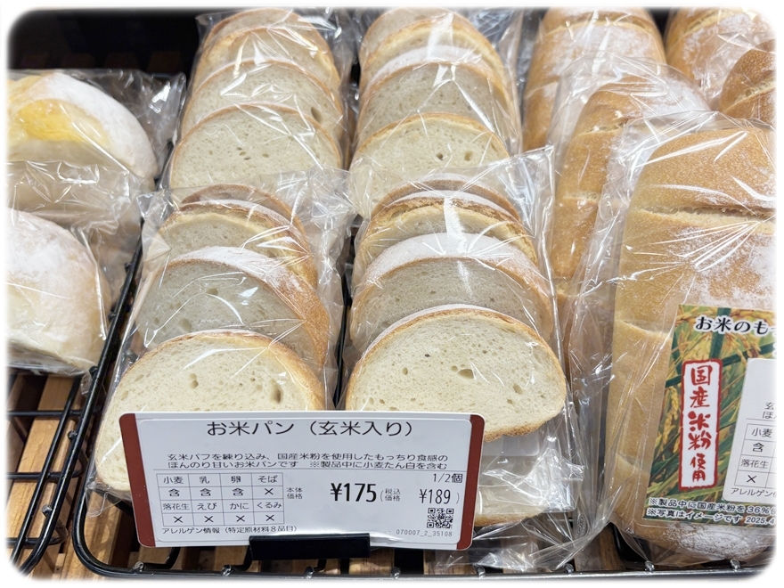 国産米粉を使用した、もっちり食感が特徴のお米パン(玄米入り)。