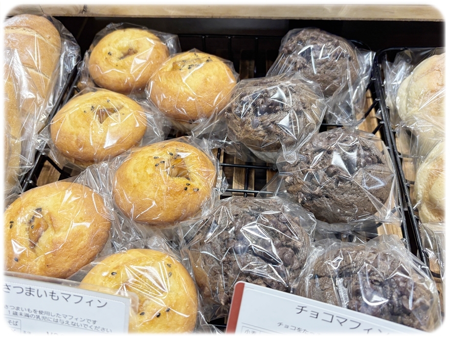 本日は、売場でご好評いただいている定番商品に加え、**「新発売」**のパンやマフィンもご用意しています。