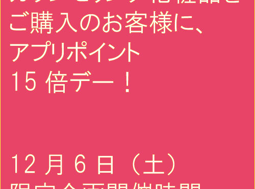 2025年6月17日総合アル・プラザ醍醐専門店 クリーンショップ おくむら(1階)|アプリ会員様限定!毎週開催!感謝の木曜 キャンペーン!アプリ会員様限定!毎週開催!感謝の木曜 キャンペーン! 感謝の木曜日キャンペーンを開催します。 アプリ会員限定 ドライ3点以上利用で (点数上限の制限なし) 15%OFF ※ワイシャツ・特殊コース・寝具類・皮革・着物・カ […]