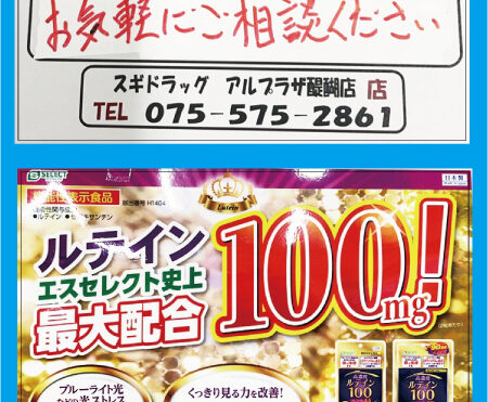 NEW 2025年12月7日総合アル・プラザ醍醐専門店 スギ薬局 アルプラザ醍醐店(2階)|12月限定!目の健康応援フェアとアイフレイル無料チェックのお知らせ12月限定!目の健康応援フェアのお知らせ スギ薬局 アル・プラザ醍醐では、12月限定で「目の健康応援フェア」を開催いたします。 ブルーライトや光ストレスによる目の疲れ、ぼやけ、かすみが気になる方に向けて、目の状態を見直す […]