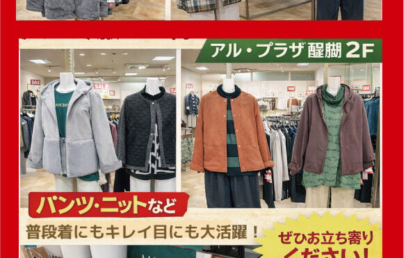 NEW 2026年2月7日総合アル・プラザ醍醐専門店 フォンターナ(Fontana)2階|【2月】まだまだ寒い今が狙い目。フォンターナ(Fontana)2階 冬物クリアランス開催中|50%〜30%まだまだ寒い2月にうれしい冬物がお得に。フォンターナ(Fontana)2階では冬物クリアランスを開催中。コートやニットなど、今すぐ着られて春先まで使えるアイテムを店頭でご紹介しています。