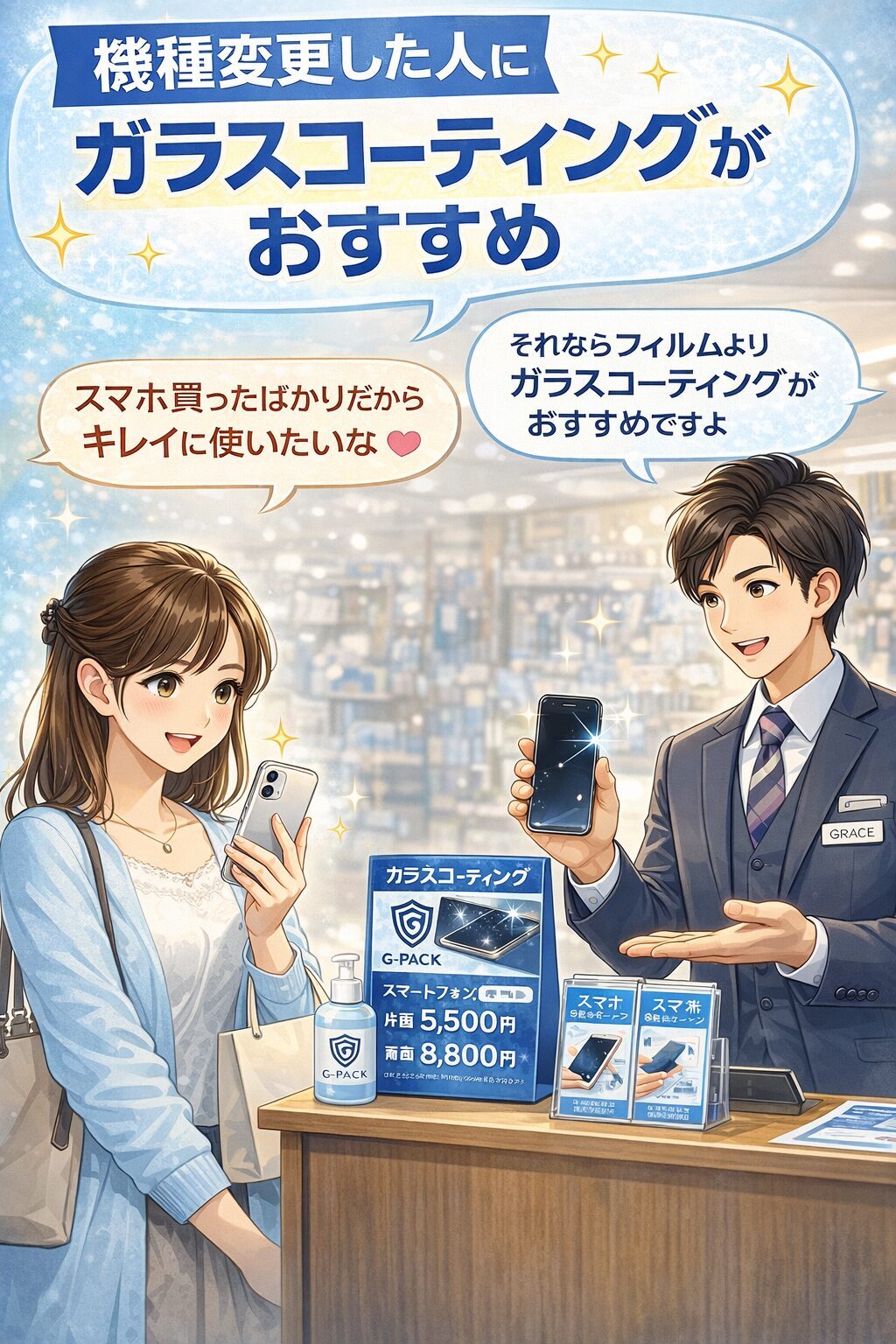 GRACE アル・プラザ醍醐店では、京都市伏見区でスマホガラスコーティングをお探しの方に向けて、気軽に相談しやすい環境を整えています。