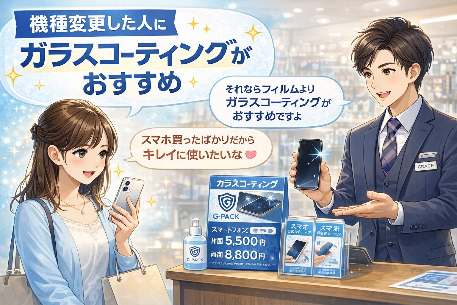 ガラスコーティングなら、見た目を損ねにくく、画面本来の美しさや操作感を保ちやすいのが魅力です。