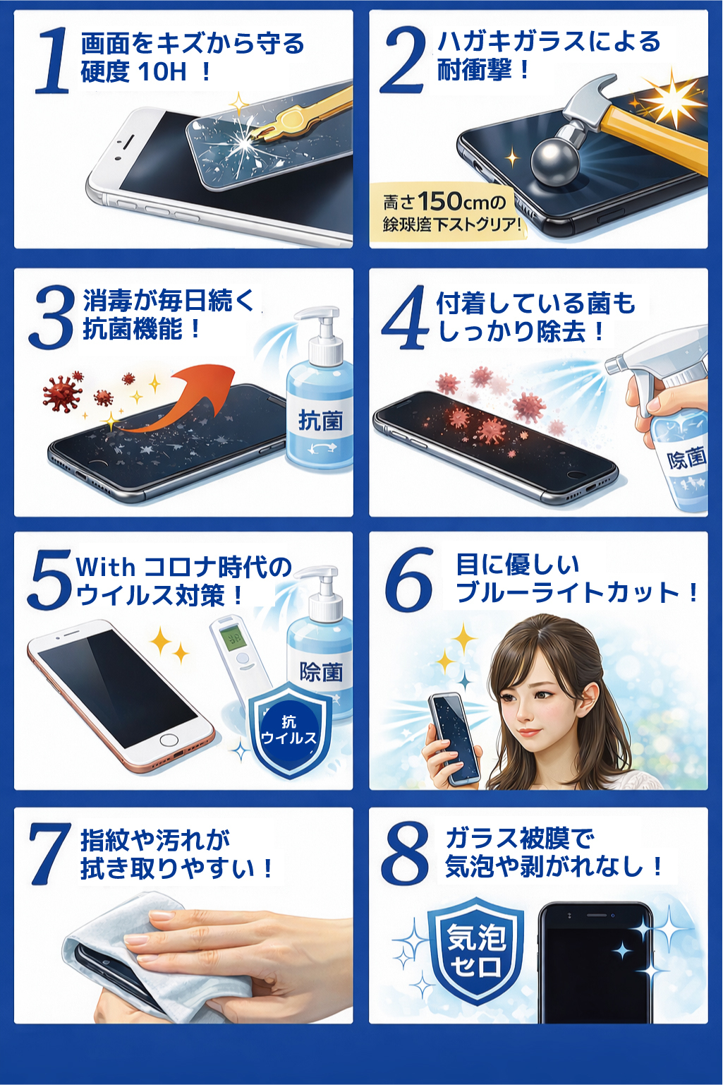 G-PACKのスマホガラスコーティングには、毎日使うスマホにうれしい機能がひとつにまとまっています。