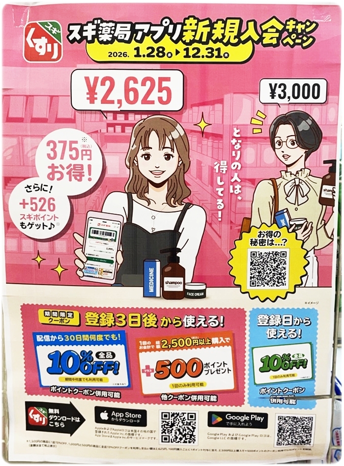 スギ薬局アプリ新規入会キャンペーン開催中!