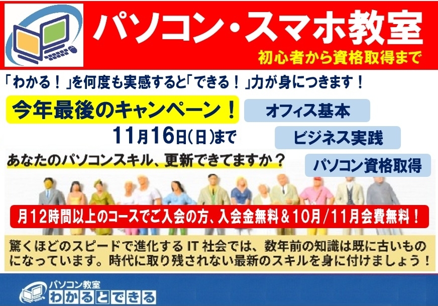 京都市伏見区のパソコン教室 なら 駅直結 わかるとできる 京都 伏見区 アル・プラザ醍醐校(3階)|今年最後のキャンペーンを実施!キャンペーンは、 2025年11月16日まで
