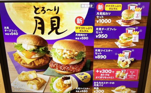 ケンタッキーフライドチキンさんの10月9日時点のメニューです。
